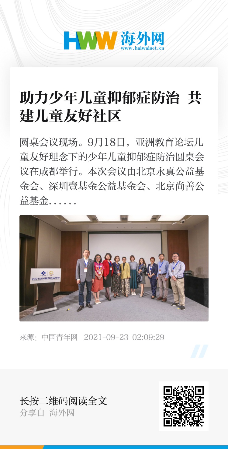 9月18日,亚洲教育论坛儿童友好理念下的少年儿童抑郁症防治圆桌会议在成都举行。
