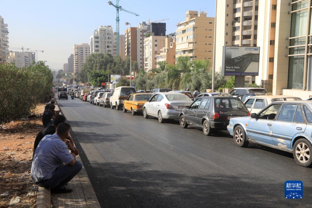 9月21日,在黎巴嫩贝鲁特一加油站前,等待加油的车辆排起长龙。新华社记者 刘宗亚 摄