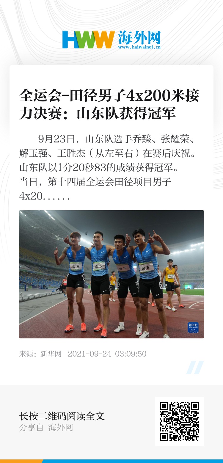 当日,第十四届全运会田径项目男子4x200米接力决赛在西安奥体中心举行。