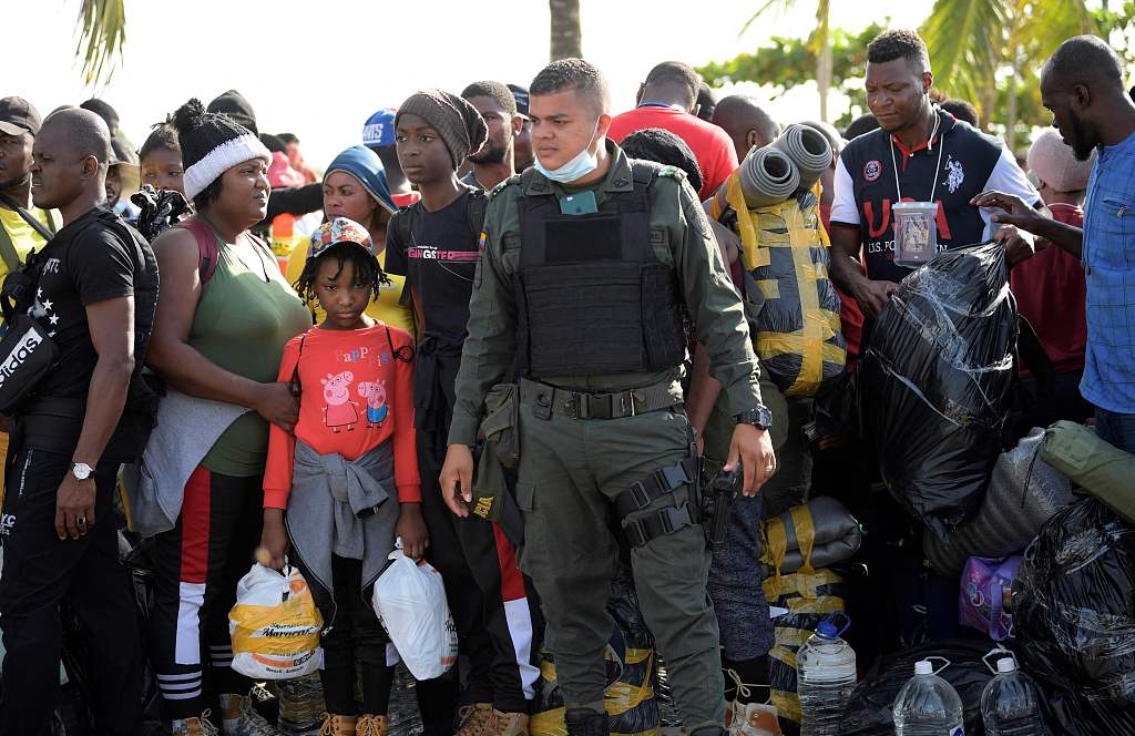 当地时间9月23日,哥伦比亚讷科克利,来自海地的移民准备登船前往巴拿马边境。图片来源:人民视觉