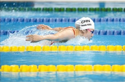 9月23日,张雨霏在女子200米蝶泳比赛中。