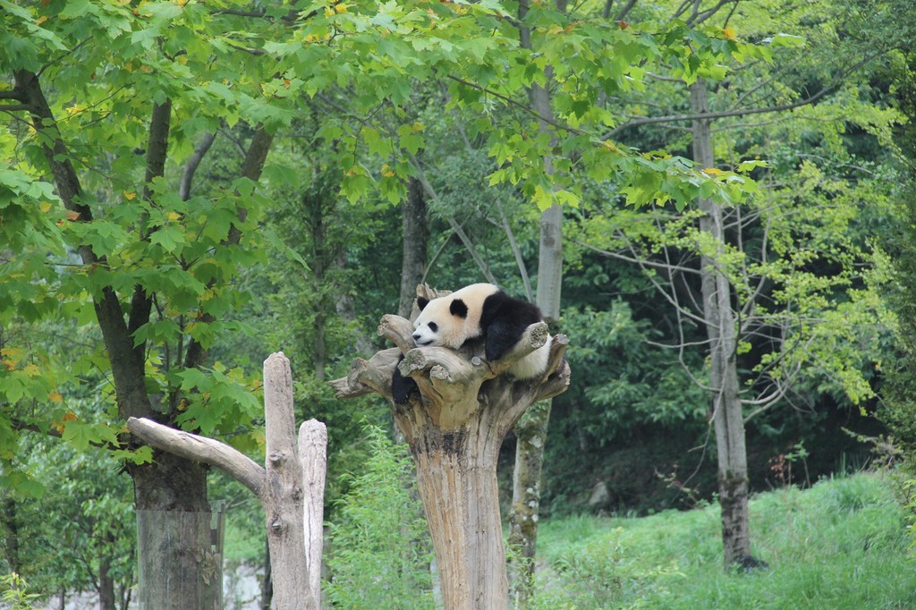 9月23日,参观四川卧龙神树坪大熊猫基地熊猫幼儿园,瞧,大熊猫宝宝爬树、打滚,怎么可爱怎么来,可萌了。图片来源: 流浪/IC photo
