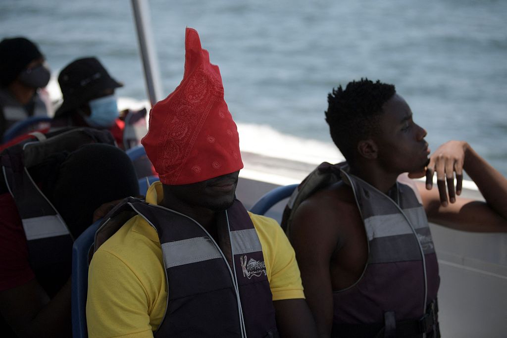 当地时间2021年9月24日,最后一批聚集在美国得克萨斯州边境小城德尔里奥一个桥下临时营地的海地难民和非法移民,乘坐美国当局转移安置的车辆离开。据报道,目前仍有不少海地难民滞留在墨西哥境内,对于他们而言,未来究竟该往何处去,仍然是个问号。部分难民表示:美国执法人员的粗暴成了挥之不去的阴影。图片来源:人民视觉