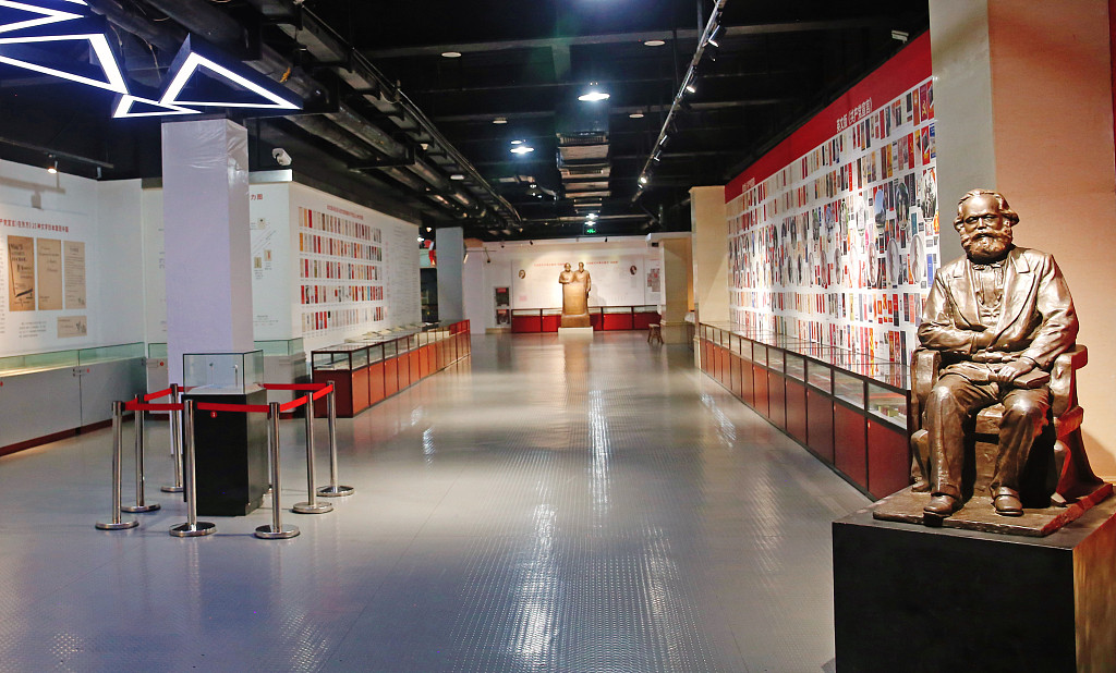 2021年9月23日,上海青浦东方绿舟国防教育基地《红色之源:马恩经典与党建核心文献》上海首展举办。2700多种版本的马克思、恩格斯所著《共产党宣言》、220种《中国共产党党章》珍品与观众见面。展品还包括全球唯一发现的《共产党宣言》马克思签名本珍贵藏品、马克思恩格斯雕像及相关图片史料。图片来源:人民视觉
