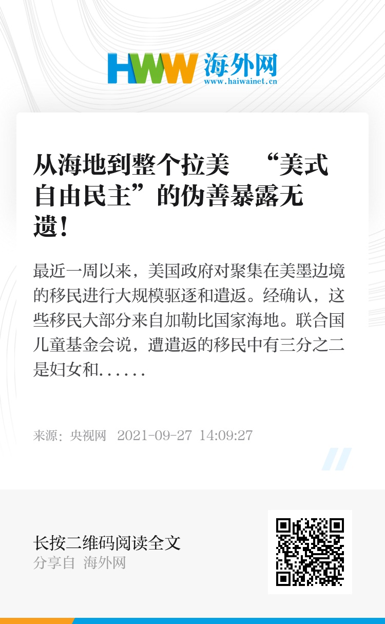 最近一周以来,美国政府对聚集在美墨边境的移民进行大规模驱逐和遣返。经确认,这些移民大部分来自加勒比国家海地。联合国儿童基金会说,遭遣返的移民中有三分之二是妇女和儿童。