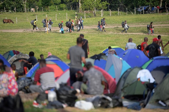 当地时间2021年9月25日,哥伦比亚城市Acandi,大部分来自海地的移民被困在当地小镇,等待前往美国。(视觉中国)