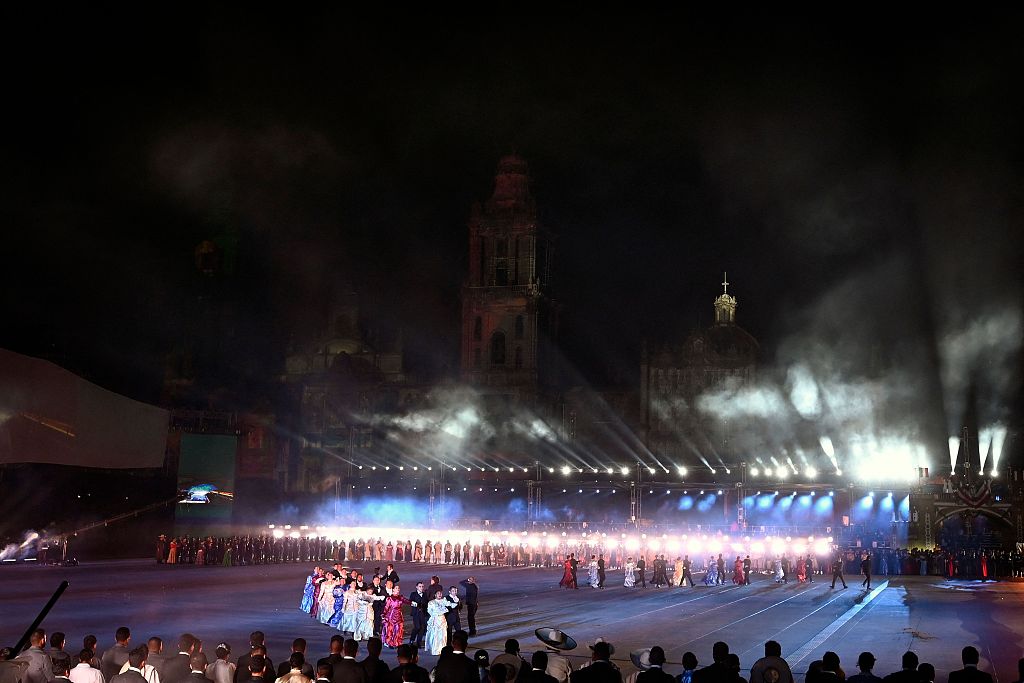 当地时间2021年9月27日,在墨西哥墨西哥城,当地庆祝独立200周年纪念活动,广场上燃放烟火。图片来源:视觉中国