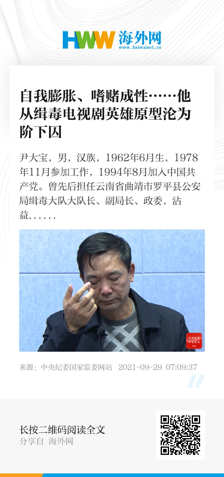 原标题:以案为鉴|他从缉毒电视剧英雄原型沦为阶下囚