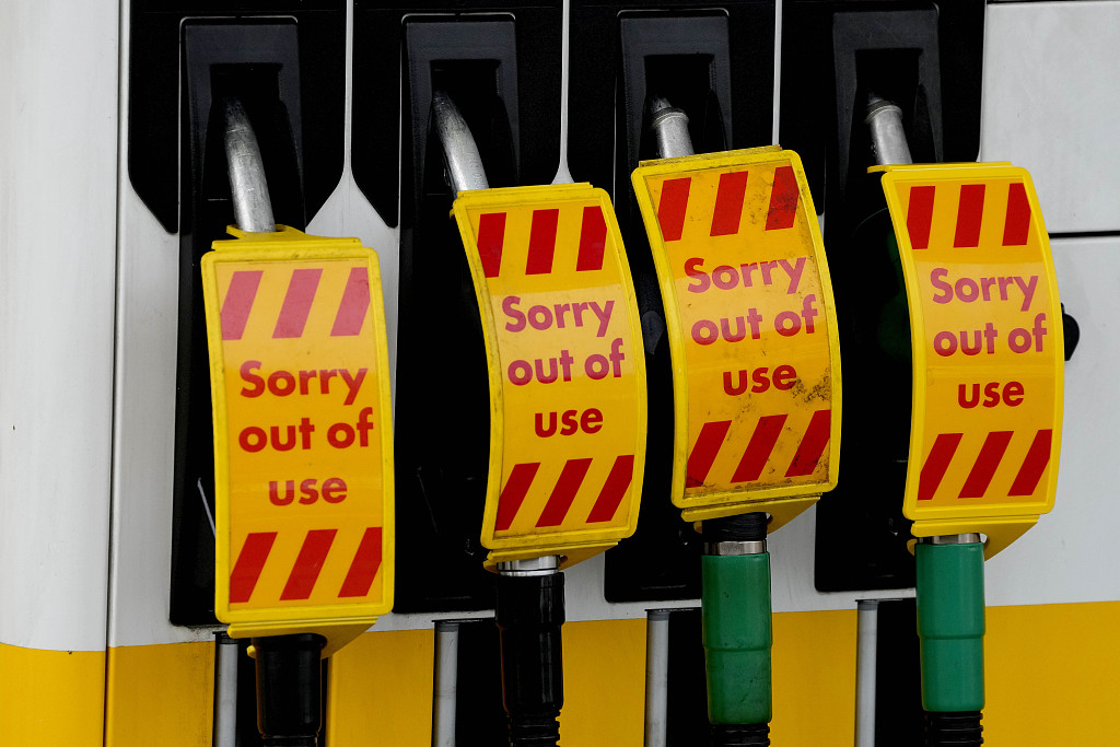 据路透社报道,因卡车司机短缺导致物流运输困难,从而引发供应链危机等问题,英国已有数千家加油站因燃油售空被迫关闭,而民众仍然在各大城市加油站排队购买燃油。图为当地时间9月28日,英国伯明翰,司机在加油站排队加油。图片来源:视觉中国
