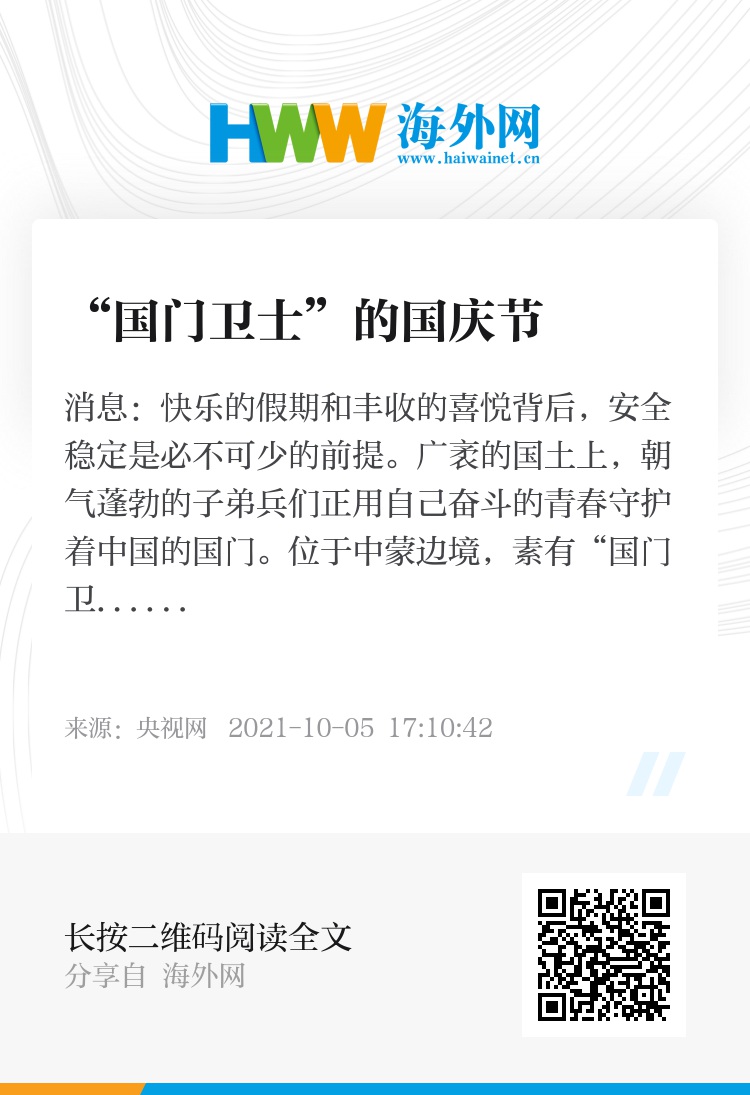 央视网消息:快乐的假期和丰收的喜悦背后,安全稳定是必不可少的前提。广袤的国土上,朝气蓬勃的子弟兵们正用自己奋斗的青春守护着中国的国门。