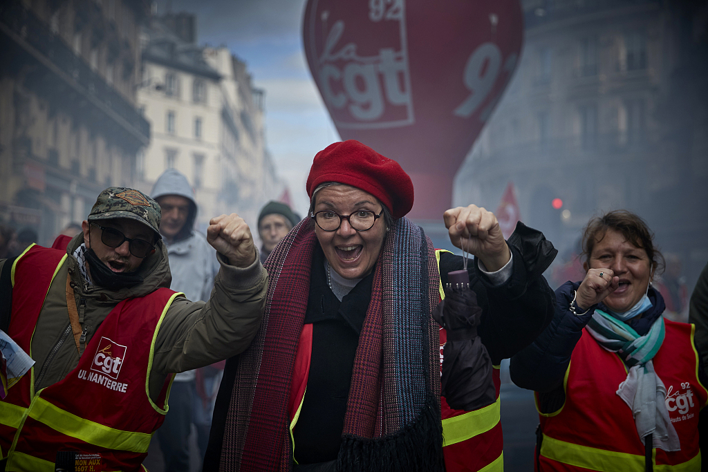 当地时间2021年10月5日,法国主要工会和青年组织在各地发动罢工和示威游行,要求增加工资、保护就业岗位。图片来源:人民视觉
