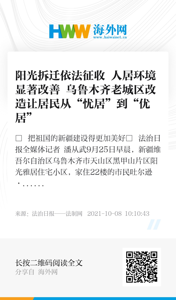 9月24日,乌市老城区(棚户区)改造提升建设工程指挥部办公室综合办公室主任、征收组组长解海蛟告诉《法治日报》记者,2010年至2016年底,乌市共完成征收5.56万户,开工建设房屋7.5万套,总建筑面积857.86万平方米。特别是2017年以来,乌市启动实施有史以来规模最大、范围最广、难度最高、情况最复杂的老城区(棚户区)改造提升工程。在过去的10余年间,乌市有超过50万户逾百万各族群众受益于乌市持续实施的大规模老城区(棚户区)改造工程。