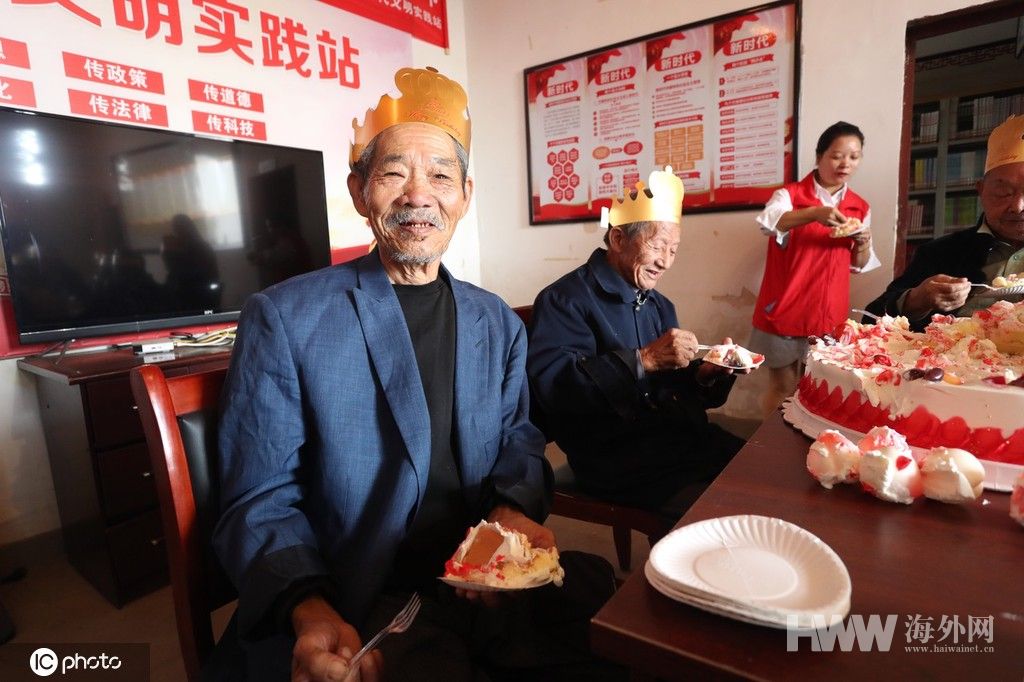 10月13日,江西省抚州市东乡区邓家乡嵇坊村开展“爱老敬老 共享小康”活动,村干部和志愿者准备了美味的蛋糕,一起为辖区10月份过生日的老人集体祝寿,将生日祝福送到老人心坎上,共度重阳节。活动让更多的老人走出家门,感受乡村大家庭的温暖,同时也促进邻里之间的沟通交流,增进村民之间的感情。(供图:东方IC)