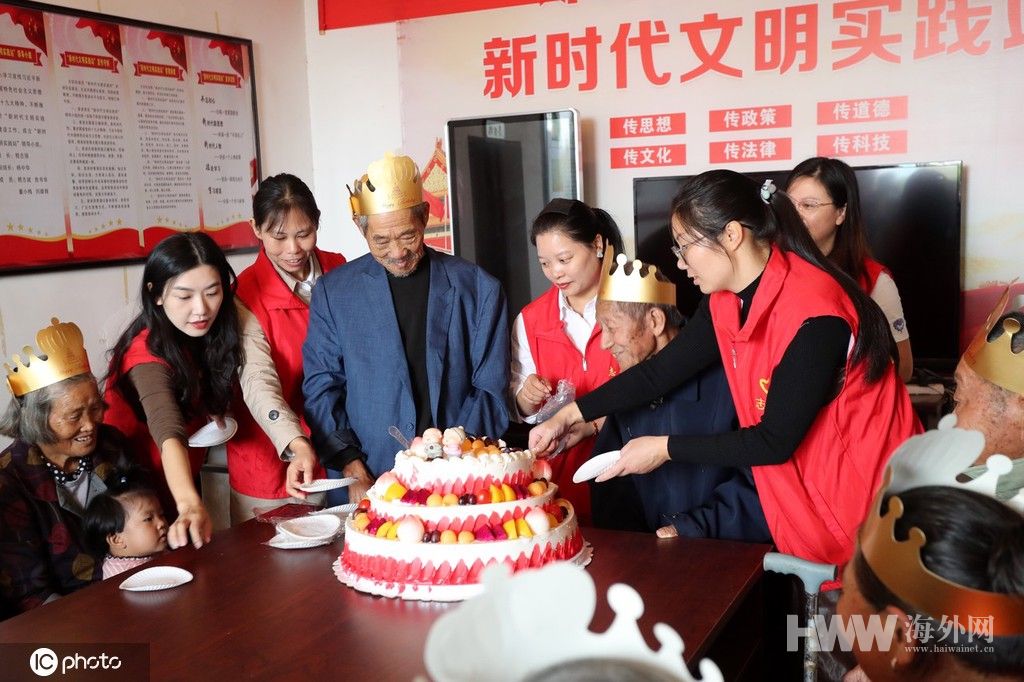 10月13日,江西省抚州市东乡区邓家乡嵇坊村开展“爱老敬老 共享小康”活动,村干部和志愿者准备了美味的蛋糕,一起为辖区10月份过生日的老人集体祝寿,将生日祝福送到老人心坎上,共度重阳节。活动让更多的老人走出家门,感受乡村大家庭的温暖,同时也促进邻里之间的沟通交流,增进村民之间的感情。(供图:东方IC)