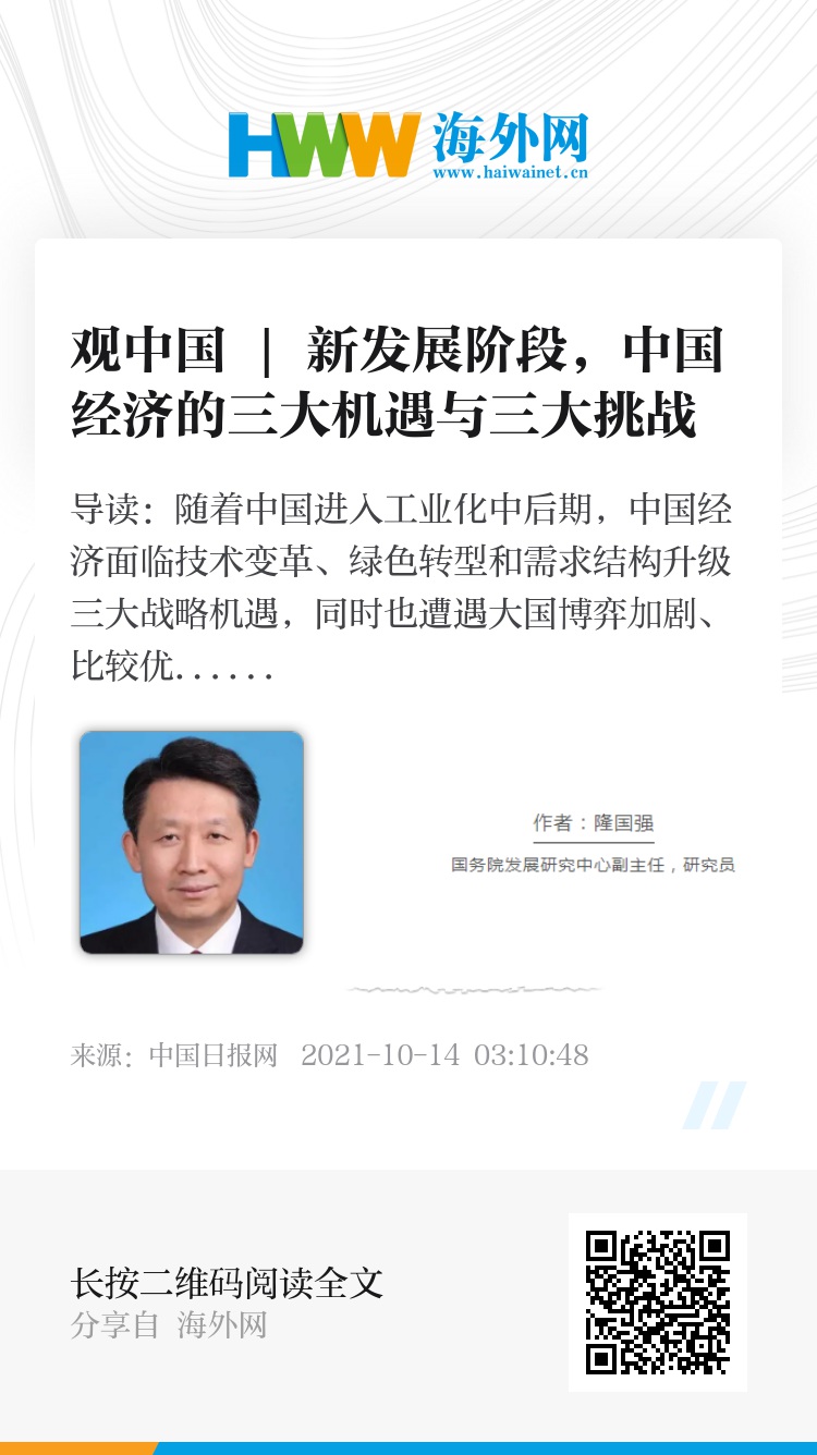 导读:随着中国进入工业化中后期,中国经济面临技术变革、绿色转型和需求结构升级三大战略机遇,同时也遭遇大国博弈加剧、比较优势转换和人口结构变化三大挑战。立足这一新发展阶段,中国应把政策重点放在提升创新能力、坚持对外开放、扩大内需、处理好发展与安全的关系上。