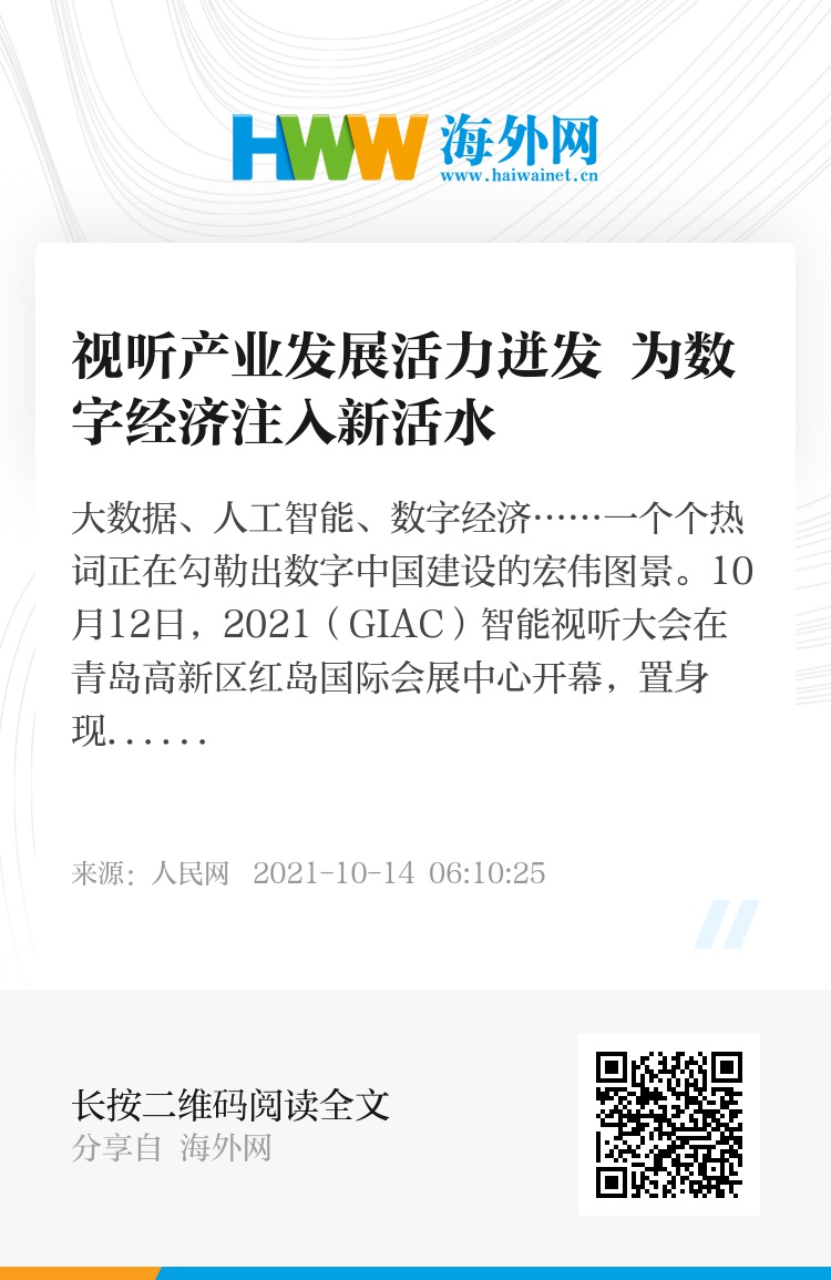 大数据、人工智能、数字经济……一个个热词正在勾勒出数字中国建设的宏伟图景。10月12日,2021(GIAC)智能视听大会在青岛高新区红岛国际会展中心开幕,置身现场可以强烈地感受到,数字技术正以新理念、新业态、新模式全面融入,给人们的生产生活带来广泛而深刻的影响。