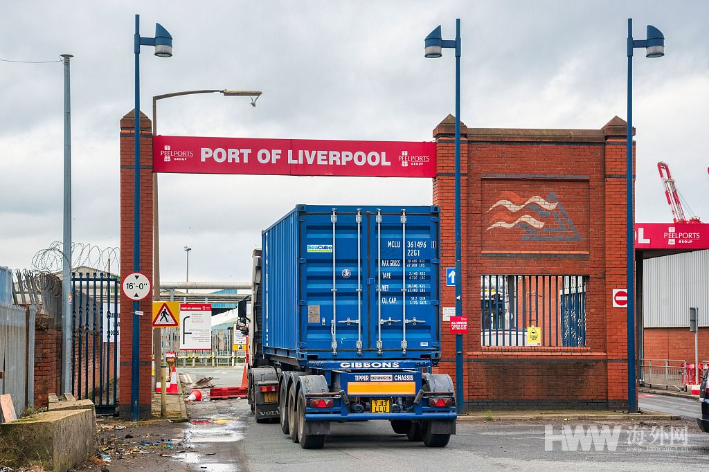当地时间2021年10月13日,英国利物浦,利物浦港口的货车。英国卡车司机短缺问题已持续数月。据英国《镜报》10日报道,由于卡车司机短缺,一些公路货运商开出多至7.8万英镑的年薪招工,远高于公交司机3.25万英镑的年均收入水平,一些公交司机因此跳槽,致使部分主要公交线路人手不足甚至无法运行。一些公交公司被迫减少发车频次,以尽量保障主要通勤线路和上学线路的公交车运行。(供图:视觉中国)