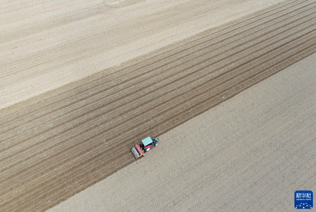 10月13日,河北省邢台市内丘县常丰村农民驾驶机械播种小麦(无人机照片)。金秋时节,河北省各地秋收秋种陆续展开,农民抓住有利时机,在抢收玉米的同时播种小麦,确保不误农时。新华社记者 朱旭东 摄