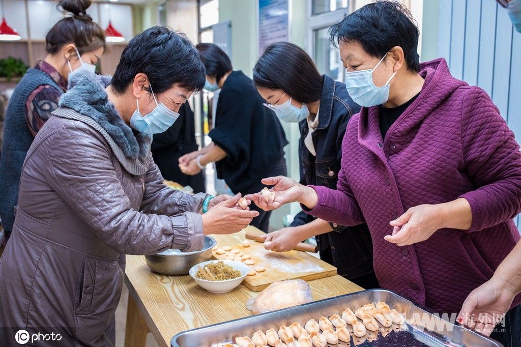 2021年10月14日,内蒙古呼和浩特市玉泉区“我们的节日·重阳”新时代文明实践活动在建华北社区新时代文明实践站举行,社区老人共聚一堂,在温馨欢乐的气氛中包饺子、做重阳糕,共度重阳节。来自玉泉区各行业的志愿者还为老人开展了义诊、文艺演出、慰问等敬老活动。(供图:东方IC)