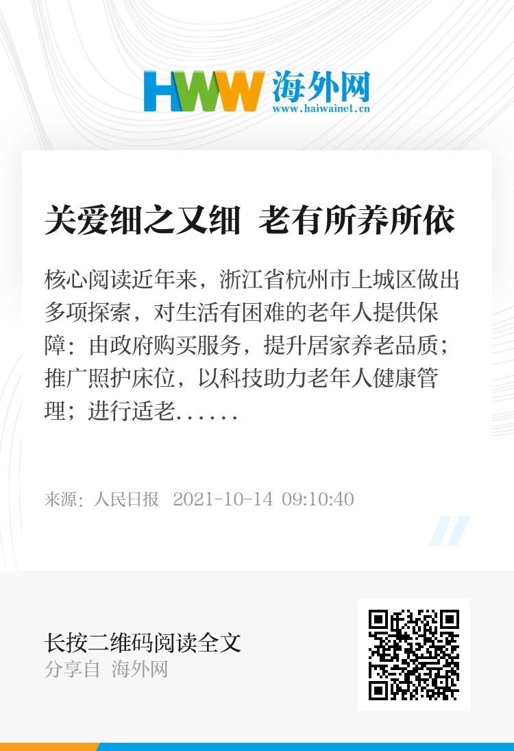 近年来,浙江省杭州市上城区做出多项探索,对生活有困难的老年人提供保障:由政府购买服务,提升居家养老品质;推广照护床位,以科技助力老年人健康管理;进行适老改造,为老年人提供生活便利……一系列帮扶措施,让更多老年人老有所养、老有所依。