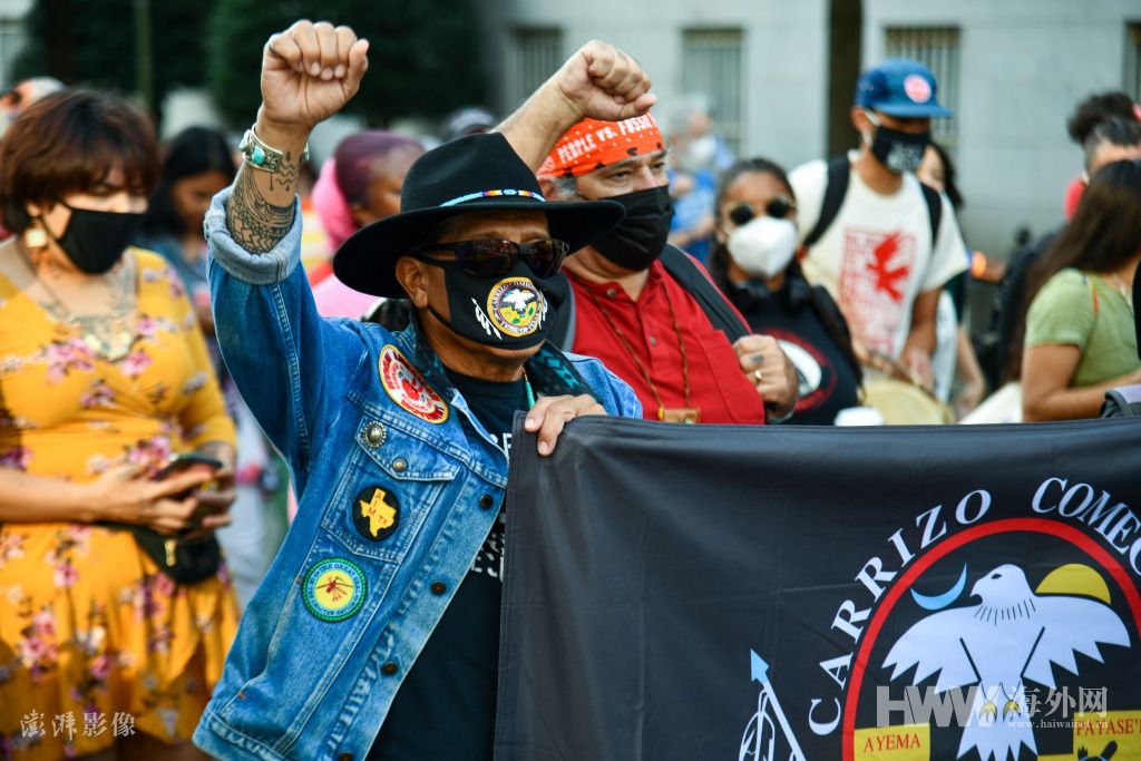 据美国媒体报道,当地时间14日,在美国华盛顿持续抗议的气候问题示威者闯入美内政部大楼并与警方发生冲突,导致抗议者和安保人员中有多人受伤。综合美国《华盛顿邮报》及《新闻周刊》消息,示威者当时试图“占领”美国内政部,有数十人闯入了内政部主楼。同时,打算控制一扇大门的示威者与警方发生冲突,并一度尝试冲破安保警戒线。示威人群称,他们想要与内政部部长哈兰德进行对话,不过哈兰德本人当时并不在华盛顿。(供图:澎湃影像)