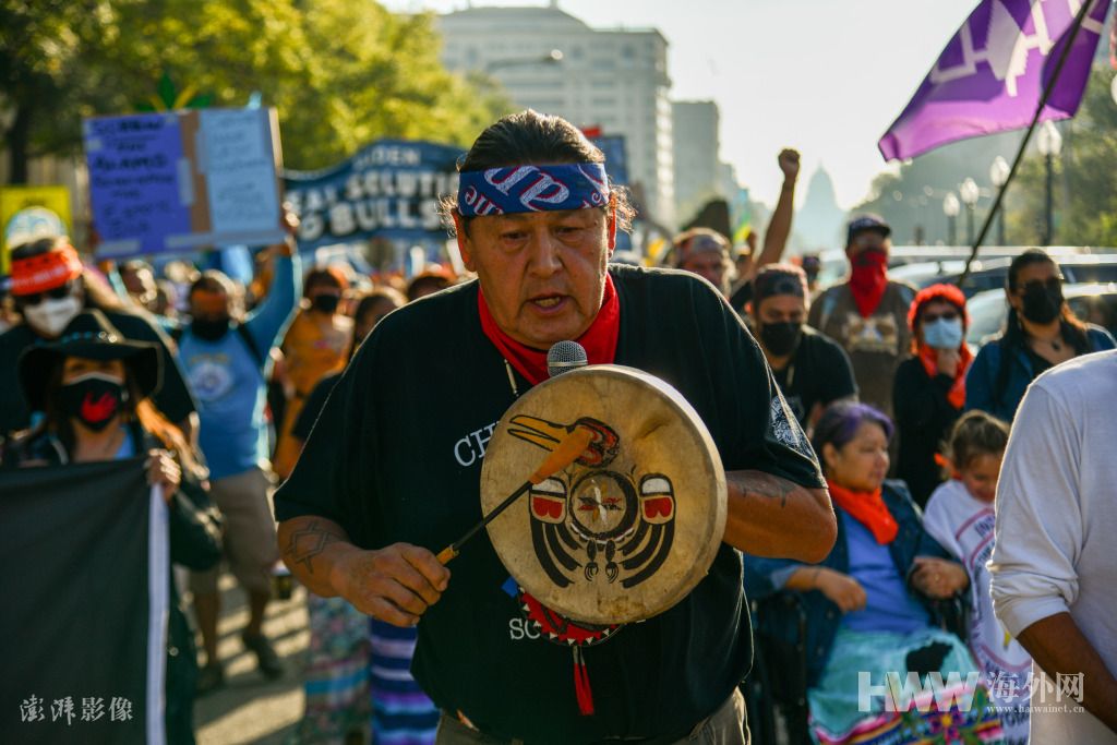 据美国媒体报道,当地时间14日,在美国华盛顿持续抗议的气候问题示威者闯入美内政部大楼并与警方发生冲突,导致抗议者和安保人员中有多人受伤。综合美国《华盛顿邮报》及《新闻周刊》消息,示威者当时试图“占领”美国内政部,有数十人闯入了内政部主楼。同时,打算控制一扇大门的示威者与警方发生冲突,并一度尝试冲破安保警戒线。示威人群称,他们想要与内政部部长哈兰德进行对话,不过哈兰德本人当时并不在华盛顿。(供图:澎湃影像)
