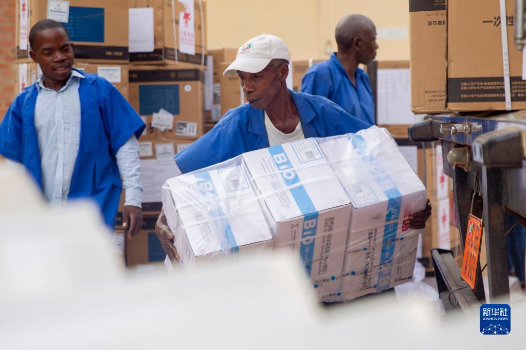 10月14日,工作人员在布隆迪经济首都布琼布拉卸载中国援助的国药新冠疫苗。中国政府援助布隆迪的50万剂国药新冠疫苗14日运抵布经济首都布琼布拉国际机场。中国驻布隆迪大使赵江平,布抗疫委员会主席、内政部长恩迪拉科布卡,卫生部长恩迪库马纳及世界卫生组织驻布代表克雷斯平当天出席了在布国家疫苗中心举行的交接仪式。新华社发(埃夫拉尔·恩根达库马纳摄)