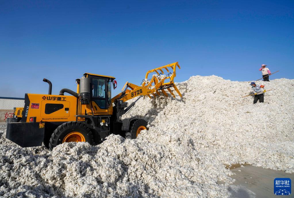 在尉犁县众望纺织有限公司,工作人员在整理新收购的棉花(10月14日摄)。新华社记者 赵戈 摄