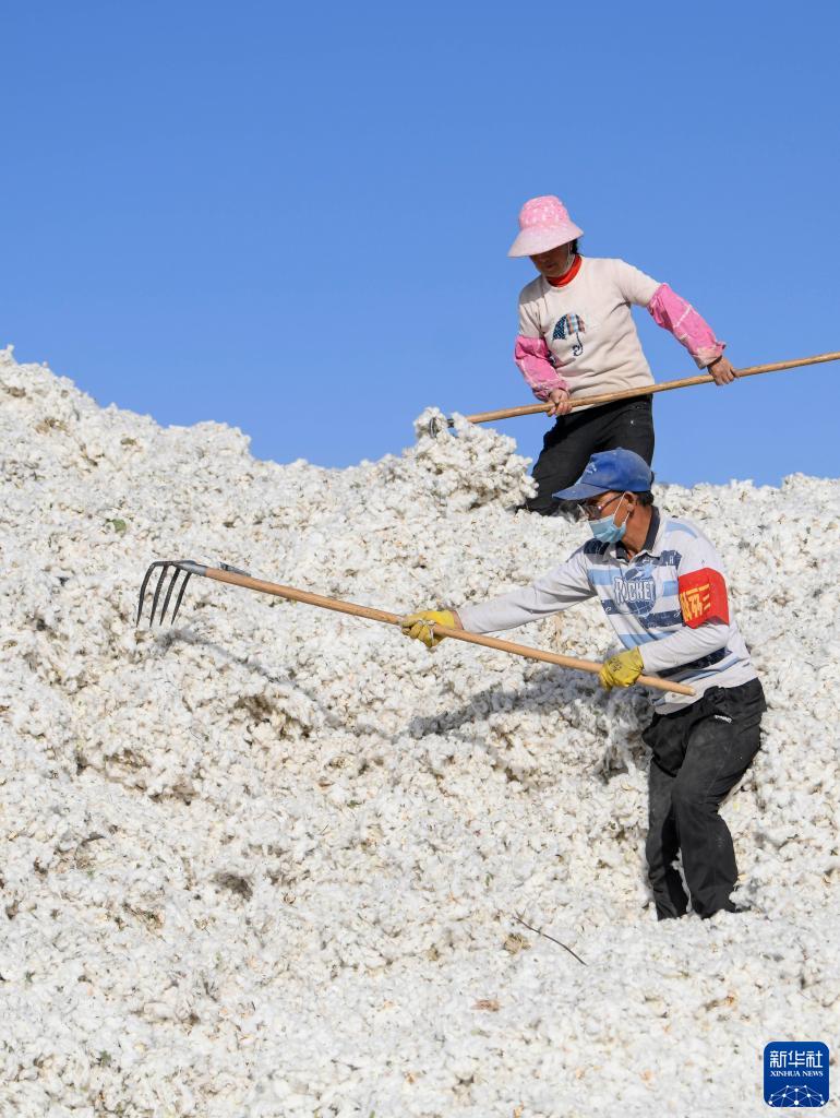 在尉犁县众望纺织有限公司,工作人员在整理新收购的棉花(10月14日摄)。新华社记者 赵戈 摄