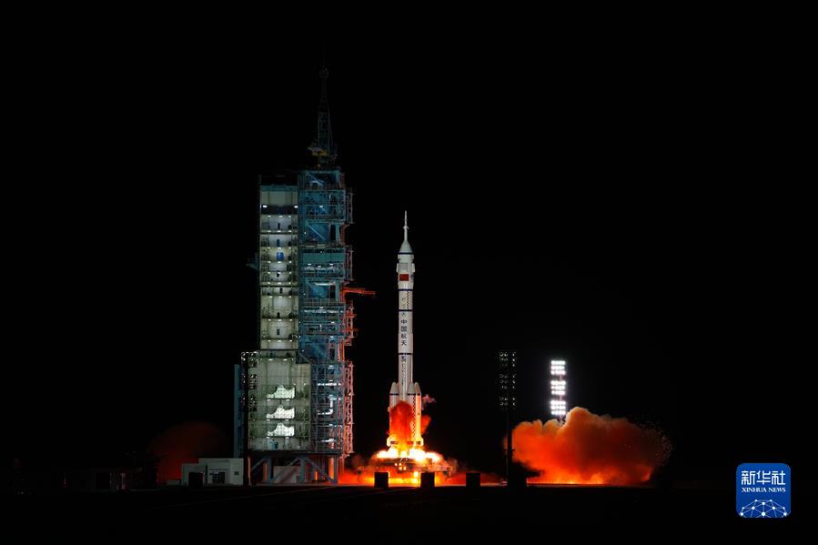 北京时间2021年10月16日0时23分,搭载神舟十三号载人飞船的长征二号F遥十三运载火箭,在酒泉卫星发射中心按照预定时间精准点火发射,约582秒后,神舟十三号载人飞船与火箭成功分离,进入预定轨道,顺利将翟志刚、王亚平、叶光富3名航天员送入太空,飞行乘组状态良好,发射取得圆满成功。新华社记者 李刚 摄