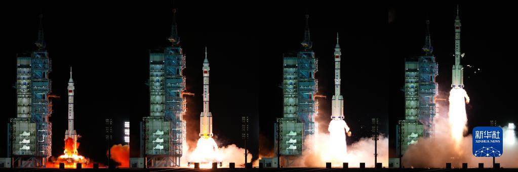 北京时间2021年10月16日0时23分,搭载神舟十三号载人飞船的长征二号F遥十三运载火箭,在酒泉卫星发射中心按照预定时间精准点火发射,约582秒后,神舟十三号载人飞船与火箭成功分离,进入预定轨道,顺利将翟志刚、王亚平、叶光富3名航天员送入太空,飞行乘组状态良好,发射取得圆满成功。新华社记者 李刚 摄