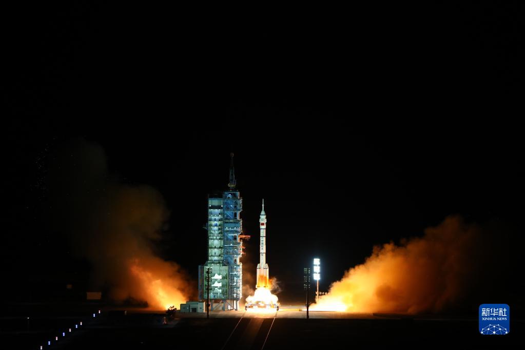 北京时间2021年10月16日0时23分,搭载神舟十三号载人飞船的长征二号F遥十三运载火箭,在酒泉卫星发射中心按照预定时间精准点火发射,约582秒后,神舟十三号载人飞船与火箭成功分离,进入预定轨道,顺利将翟志刚、王亚平、叶光富3名航天员送入太空,飞行乘组状态良好,发射取得圆满成功。新华社记者 琚振华 摄