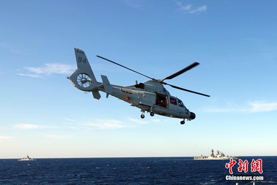 10月15日,中俄“海上联合-2021”联合军事演习开幕进入第二天,在俄罗斯彼得大帝湾附近海域进行实兵演练。双方将主要围绕通信演练、编队通过水雷威胁区、消灭浮雷、编队防空、对海射击、联合机动、联合反潜等科目展开演练。图为中方指挥舰南昌舰舰载直升机飞行演练。