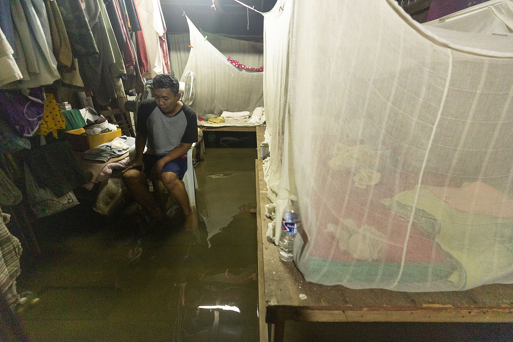 ​当地时间10月17日,泰国曼谷爆发洪水,居民家中被淹没。图片来源:视觉中国
