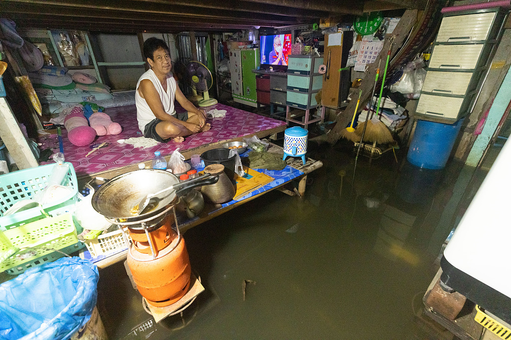 ​当地时间10月17日,泰国曼谷爆发洪水,居民家中被淹没。图片来源:视觉中国