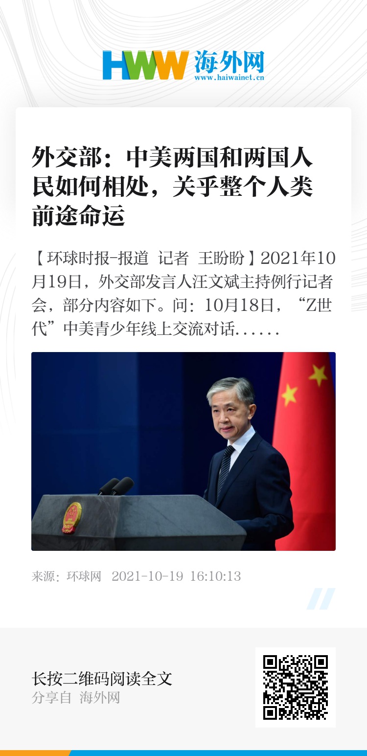 【环球时报-环球网报道 记者 王盼盼】2021年10月19日,外交部发言人汪文斌主持例行记者会,部分内容如下。
