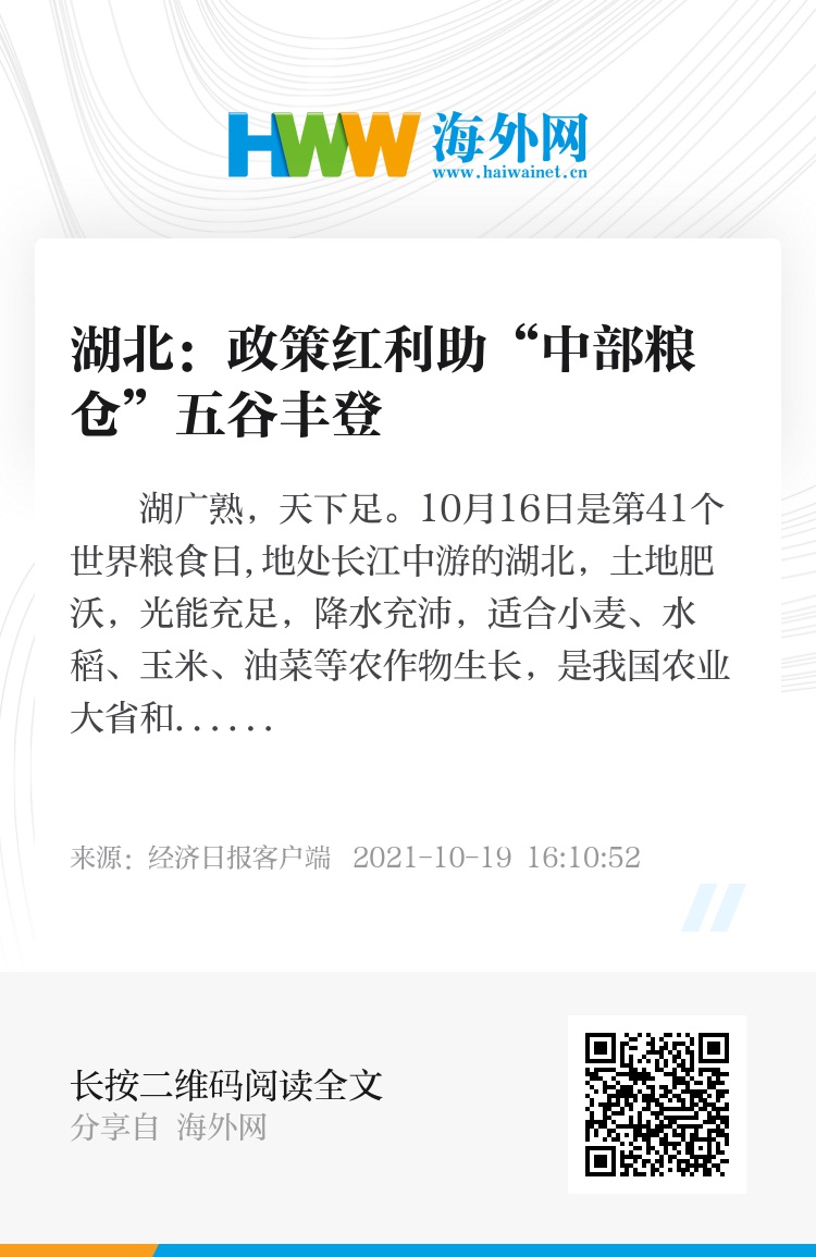 湖广熟,天下足。10月16日是第41个世界粮食日,地处长江中游的湖北,土地肥沃,光能充足,降水充沛,适合小麦、水稻、玉米、油菜等农作物生长,是我国农业大省和产粮大省,被誉为“中部粮仓”。2021年,该省夏粮播种面积1305.8千公顷,占全国的4.9%;总产量473.4万吨,占全国的3.25%。
