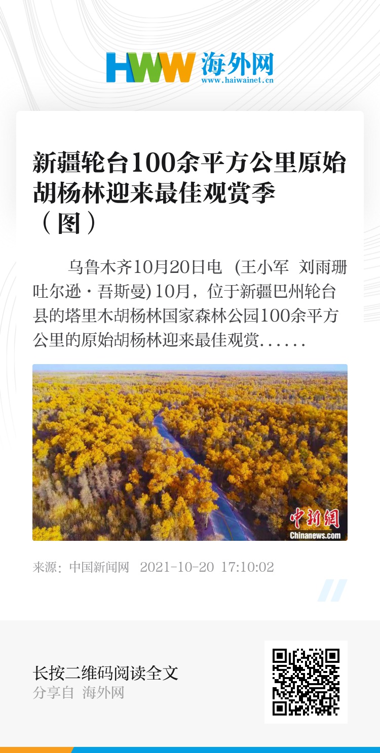 据了解,塔里木胡杨林国家森林公园原始胡杨林的最佳观赏季将从10月中旬持续到11月中旬左右。(完)