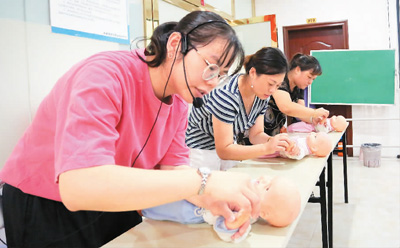 10月7日,在江西省抚州市金溪县一家职业技能培训学校,当地妇女正在参加母婴护理培训。 邓兴东摄(人民视觉)