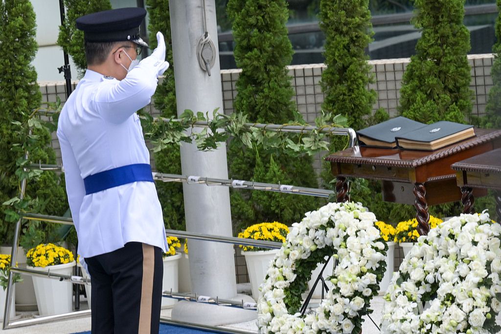 10月22日,香港警务处在香港警察总部举行警队纪念日仪式,悼念因公殉职的警务人员。中新社记者 陈永诺 摄