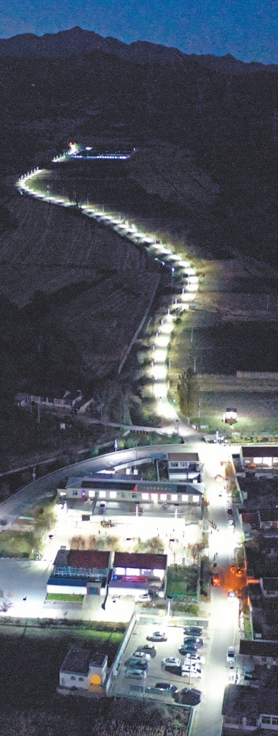 夜幕降临,张庄村路灯亮起,将村道装点一新。