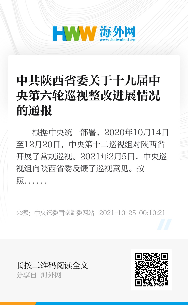 根据中央统一部署,2020年10月14日至12月20日,中央第十二巡视组对陕西省开展了常规巡视。2021年2月5日,中央巡视组向陕西省委反馈了巡视意见。按照巡视工作有关要求,现将巡视整改进展情况予以公布。