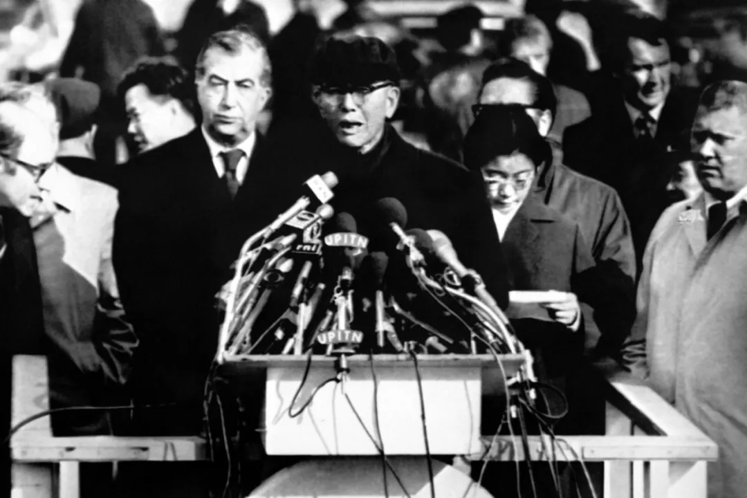 ·1971年11月12日,美国纽约,中国代表团团长、外交部副部长乔冠华发表讲话。