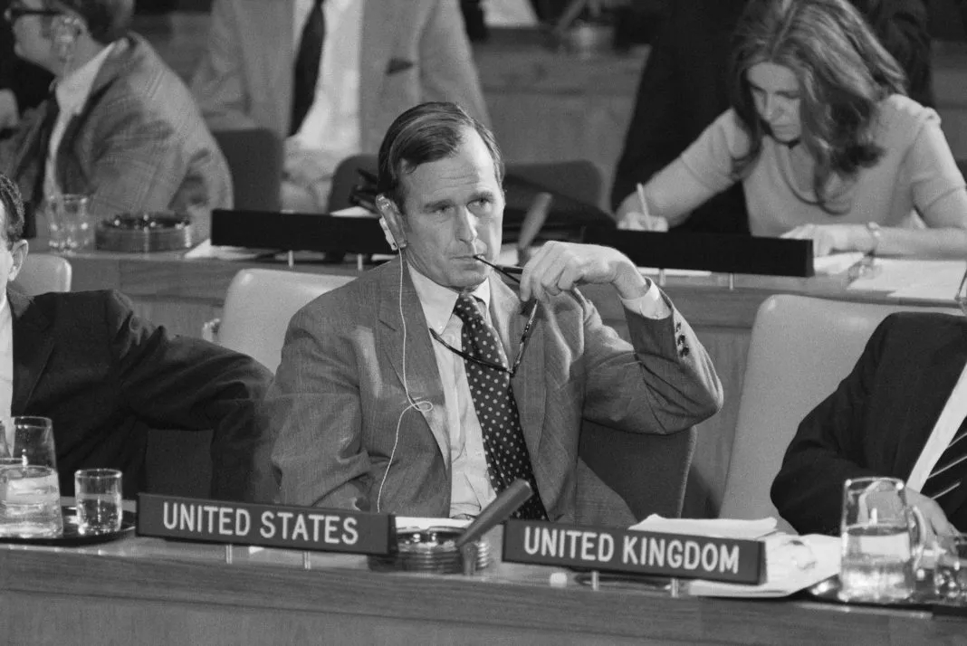 ·乔治·布什作为美国常驻联合国代表出席1971年的联合国大会。