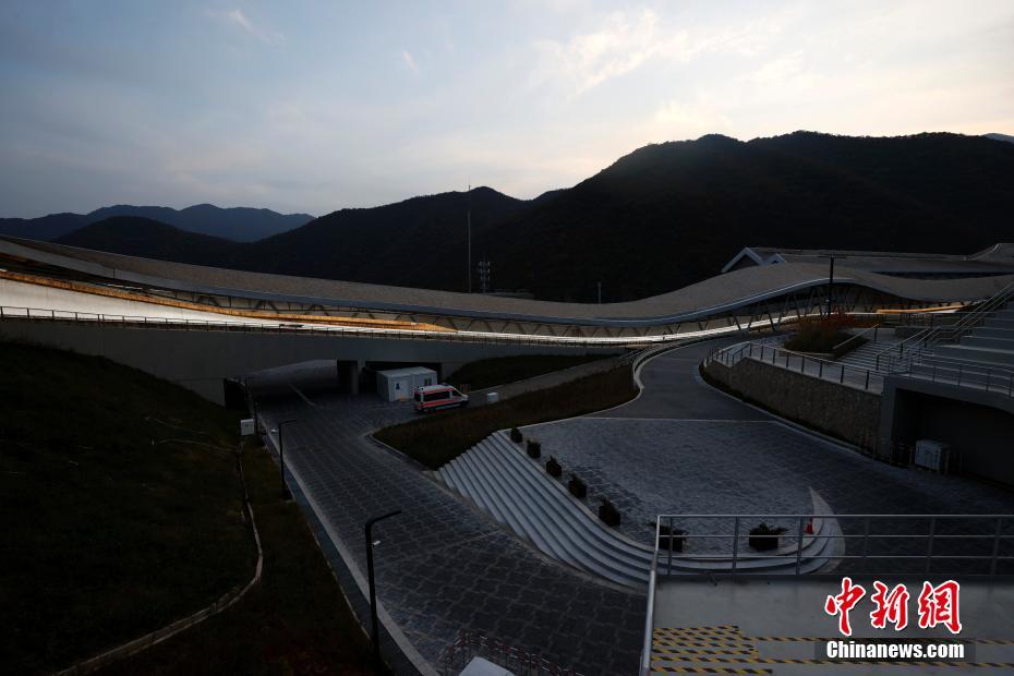 10月25日,“相约北京”2021/2022国际雪车联合会雪车、钢架雪车计时赛在北京延庆国家雪车雪橇中心正式开赛,这是国家雪车雪橇中心场馆建成后举办的首场国际赛事。来自德国、奥地利、美国、拉脱维亚、加拿大、韩国等23个国家的240名运动员参加为期两天比赛。图为国家雪车雪橇中心。 中新社记者 富田 摄