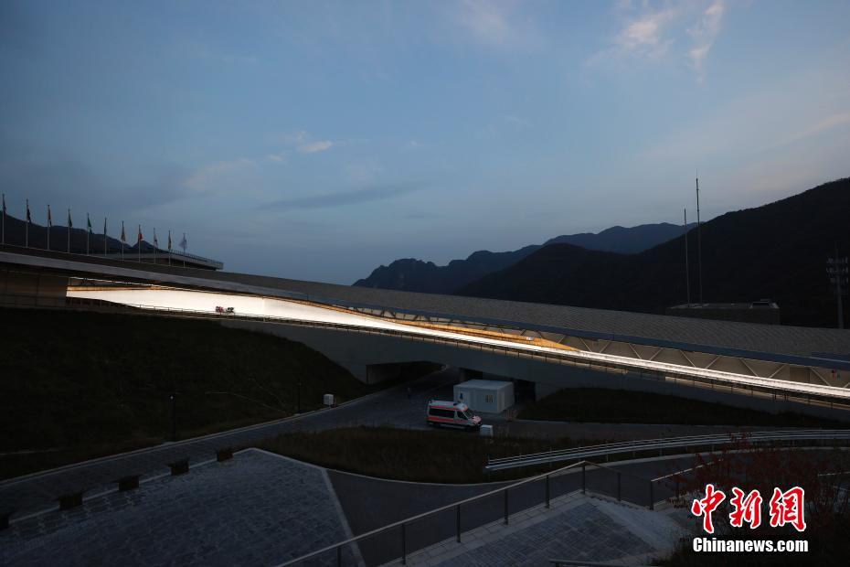 10月25日,“相约北京”2021/2022国际雪车联合会雪车、钢架雪车计时赛在北京延庆国家雪车雪橇中心正式开赛,这是国家雪车雪橇中心场馆建成后举办的首场国际赛事。来自德国、奥地利、美国、拉脱维亚、加拿大、韩国等23个国家的240名运动员参加为期两天比赛。图为国家雪车雪橇中心。 中新社记者 富田 摄