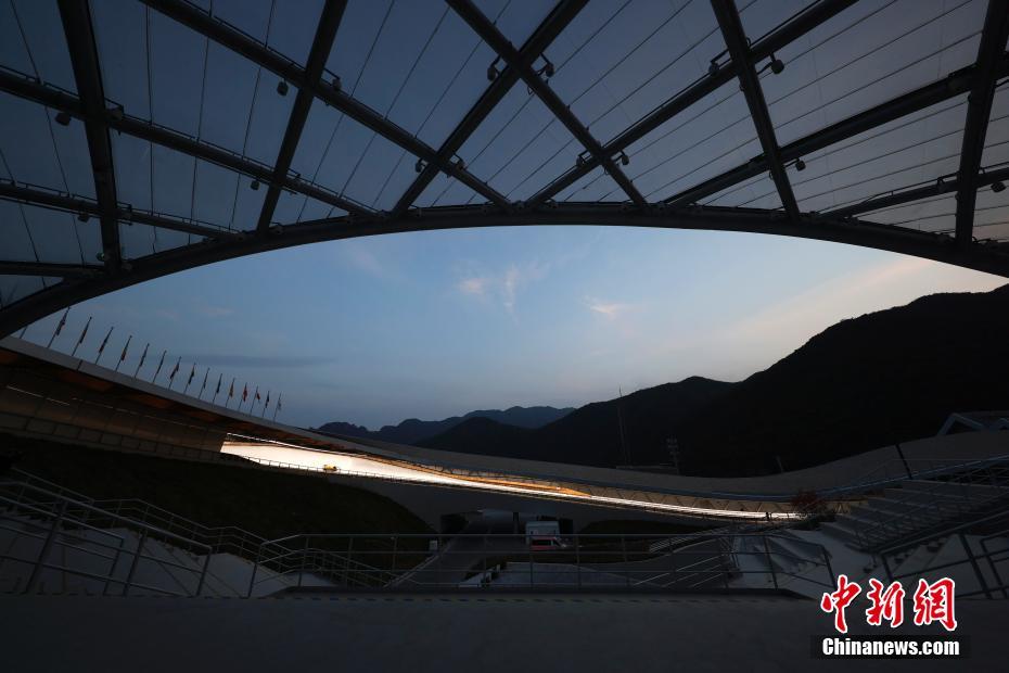 10月25日,“相约北京”2021/2022国际雪车联合会雪车、钢架雪车计时赛在北京延庆国家雪车雪橇中心正式开赛,这是国家雪车雪橇中心场馆建成后举办的首场国际赛事。来自德国、奥地利、美国、拉脱维亚、加拿大、韩国等23个国家的240名运动员参加为期两天比赛。图为国家雪车雪橇中心。 中新社记者 富田 摄