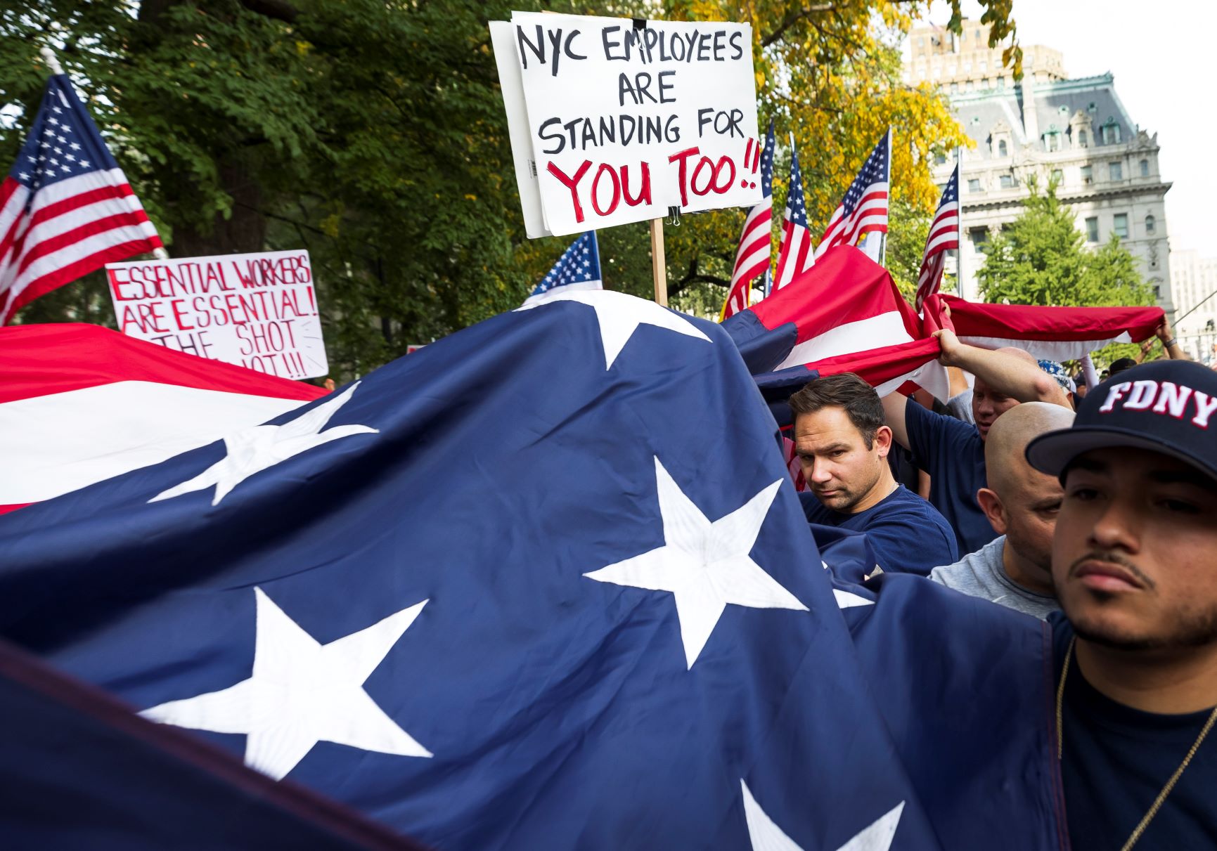 万名纽约市府雇员占领布鲁克林大桥抗议疫苗强制令