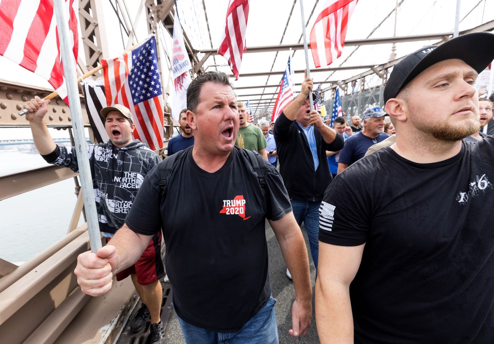 万名纽约市府雇员占领布鲁克林大桥抗议疫苗强制令