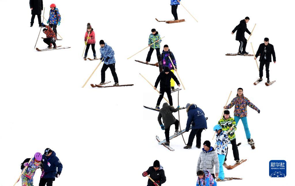 这是人们在阿勒泰市将军山滑雪场参加毛皮滑雪庆祝活动(2019年1月16日摄)。新华社记者 沙达提 摄